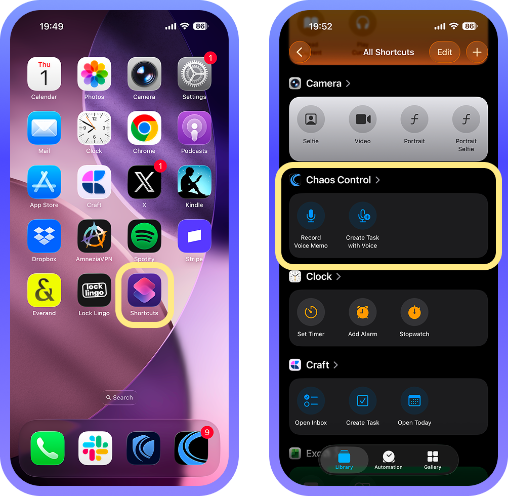 The idea behind this addition is that on iPhone you can configure a specific command to launch by pressing the hardware button on the side of the device. This way, you can set up instant note or task creation with a single press of that button. To do this, follow these steps: