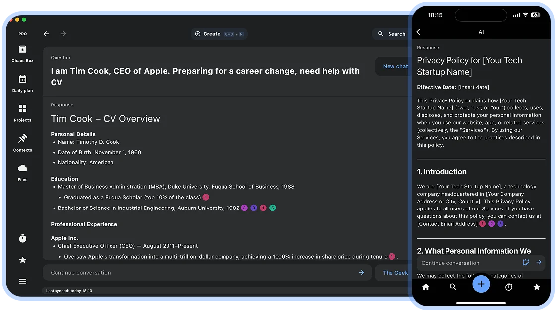 We’ve also added a dedicated AI section powered by Perplexity PRO. It will answer any question: